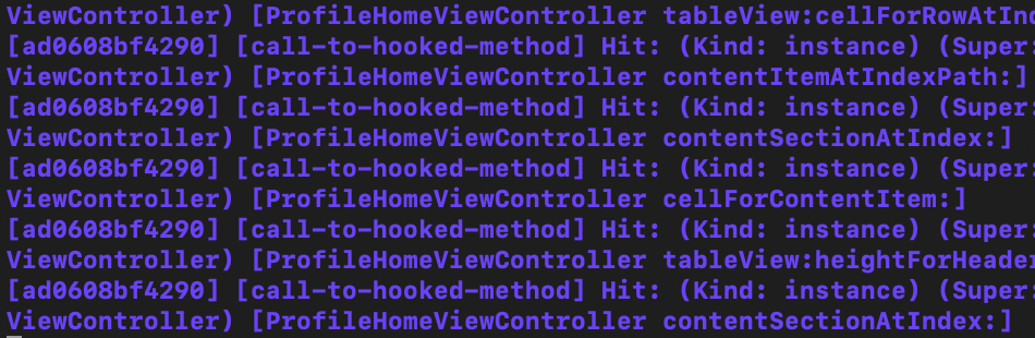 ios hooking watch classProfileHomeViewController现在,当您与应用程序的登录屏幕进行交互时,将看到如下输出内容: