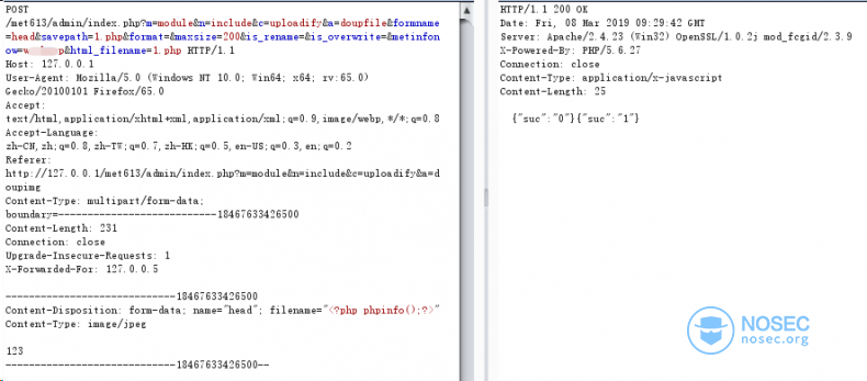 最后进入重点,如果提交的参数metinfonow和$_M['config']['met_member_force']的值相同,则调用file_put_contents函数把上述过程中缓冲区读取的内容写入到$_M['form']['html_filename']文件。这里$_M['form']数组中的内容是$_GET,$_POST,$_COOKIE参数的集合。具体代码就不贴了。也就是说,这里文件名可控,不管改成php,phtm,php5都可以。