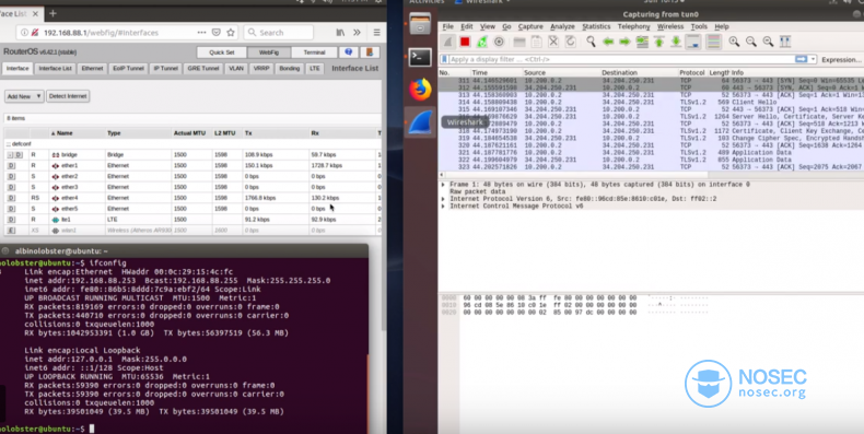 当上述的攻击架构搭建完成,Raspberry Pi和VPN Server都可以观察到局域网内的所有流量。在下图中,左侧的客户端浏览了securitybsides.com,VPN服务器的Wireshark成功捕获了请求和响应。