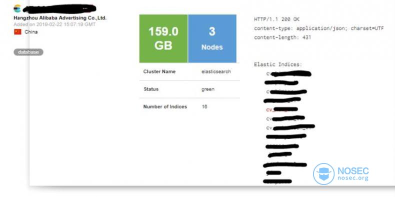 3月10日,Jain发现有一台ElasticSearch不安全,其存有3300万中国用户的简历。随后,他将问题报告给中国国家计算机应急响应小组(CNCERT),4天后数据库得到修复。