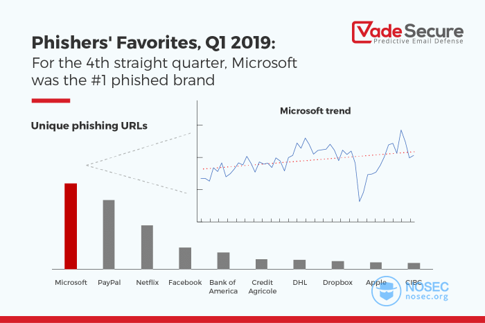 2019年第1季度网络钓鱼报告:微软是攻击者最爱模仿的服务品牌