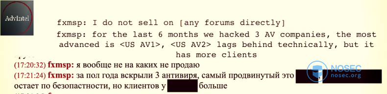一个名为Fxmsp的俄罗斯黑客组织在4月份开始在地下论坛上发布广告,称他们可以长期远程访问在美国设有办事处的多家反病毒公司的网络。