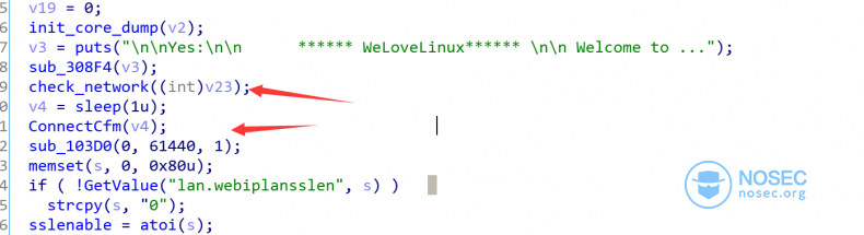 这里是第一个坑点,因为咱们是虚拟的网络环境,没有过他固件check_network函数的检查,所以会卡在这动不了,服务无法正常启动,而且会显示一些文件没有建立的提示,我这里是已经把他都修复好了,所以没有弹什么错误。