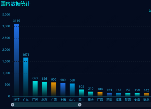中国大陆地区浙江使用数量最多,共有 3,119 个;广东第二,共有 1,617 个;江苏第三,共有 663 个,北京第四,共有 636 个;广西第五,共有 606 个。